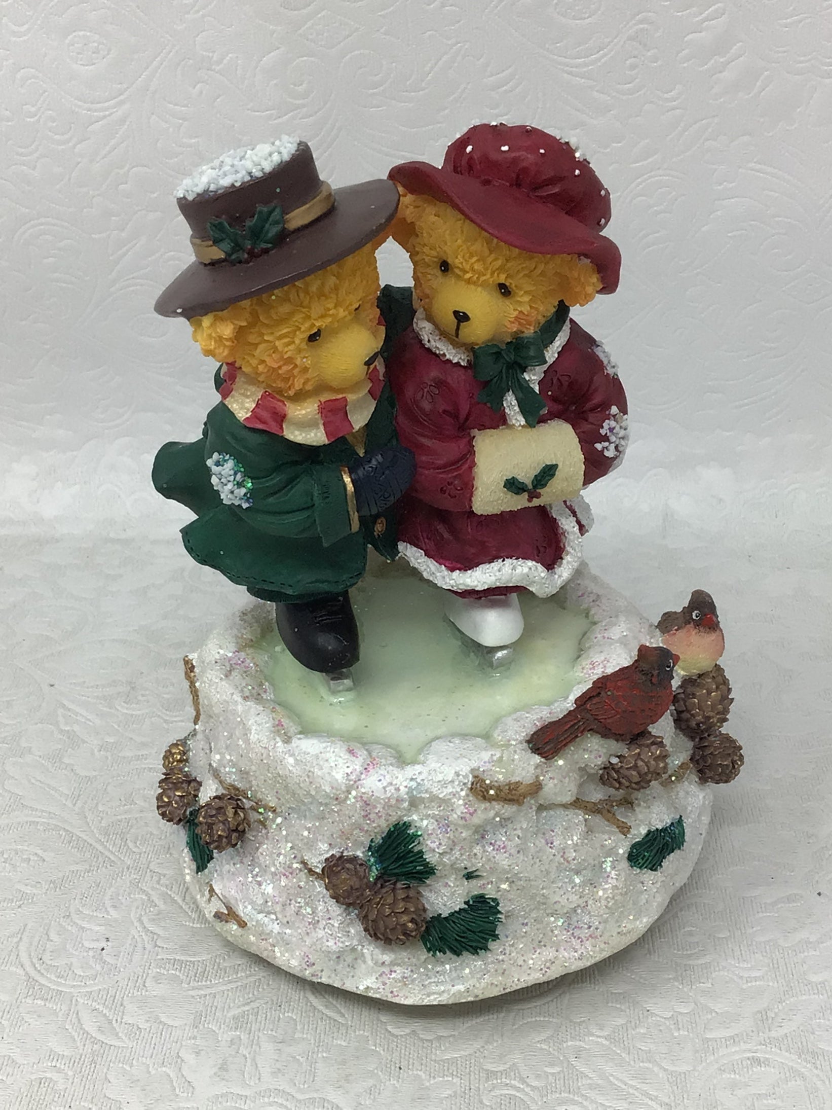 1999 Avon Loveable Teddies Musical Figure - Adorable wind up Christmas figure.