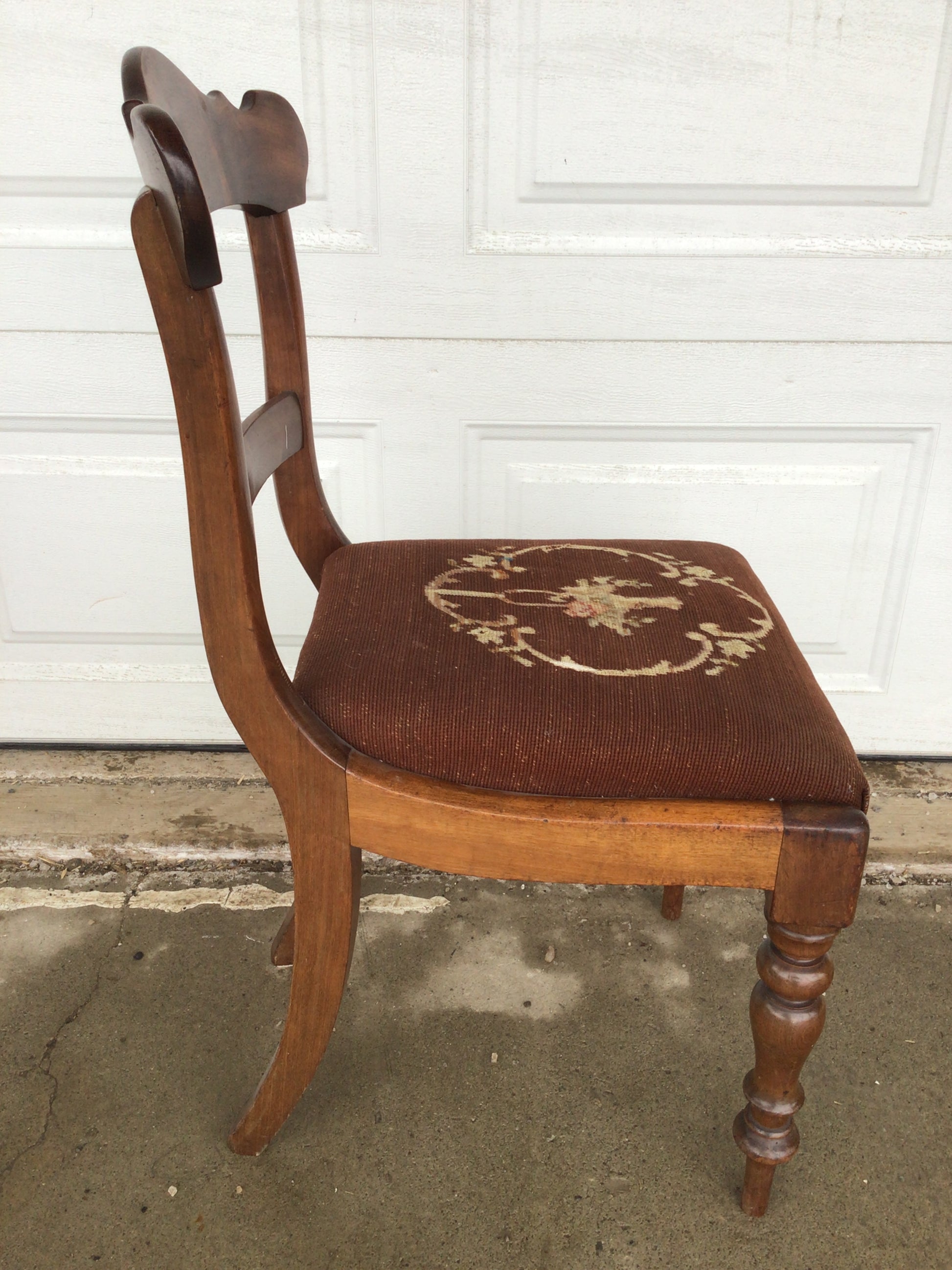 A lovely Vintage Victorian Style Chair. This chair has a lovely needlepoint seat cushion and a beautiful balloon back design.