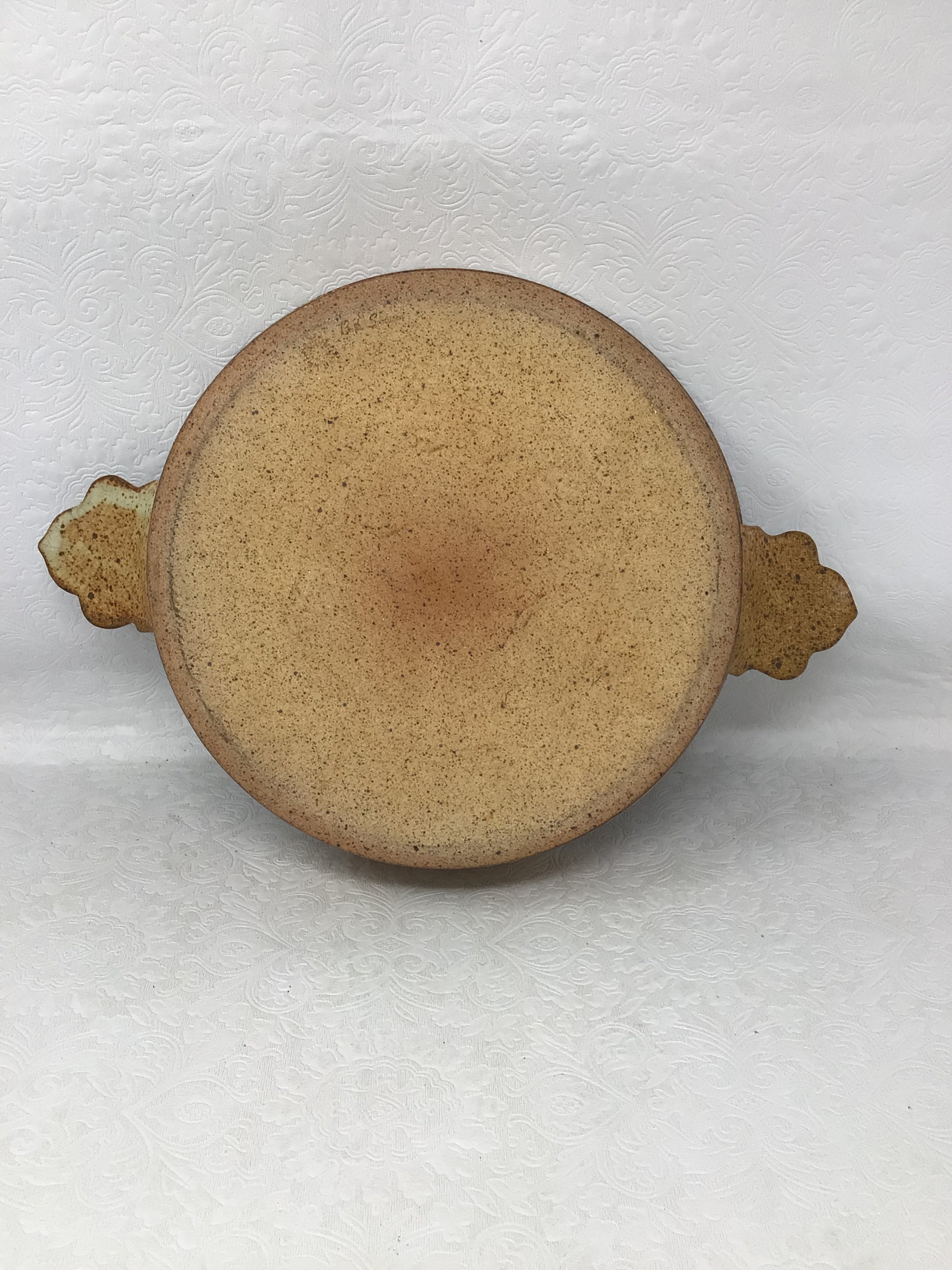 “Ruth Swanson Sunspot Pottery” Speckled Dish. This beautiful speckled dish has two handles with intricate details. It was made in Canada by Ruth Swanson. In great condition.