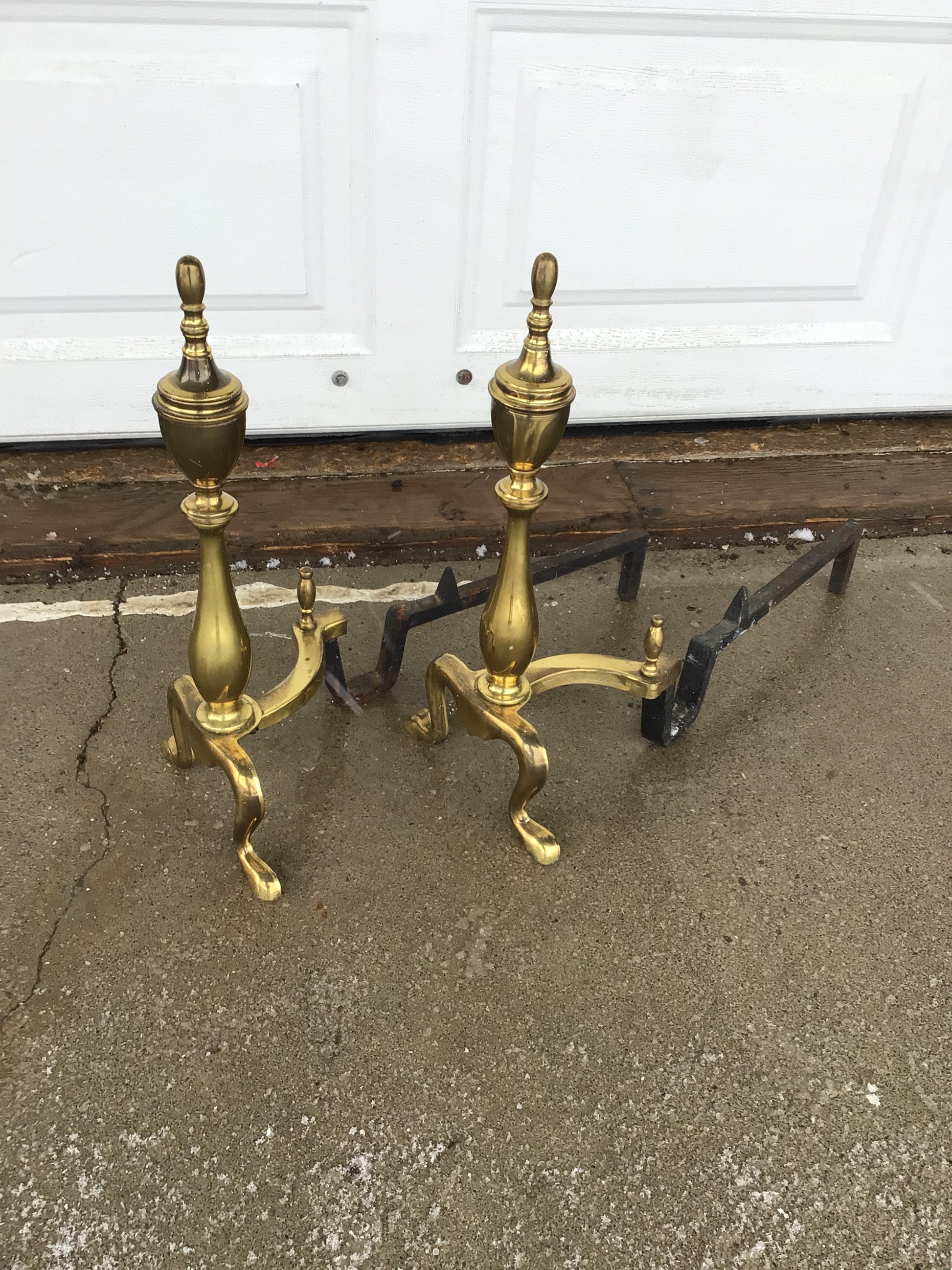 Antique Brass Fireplace Andirons. These andirons are cast iron with a brass vertical decorative element. These would look great in your home!