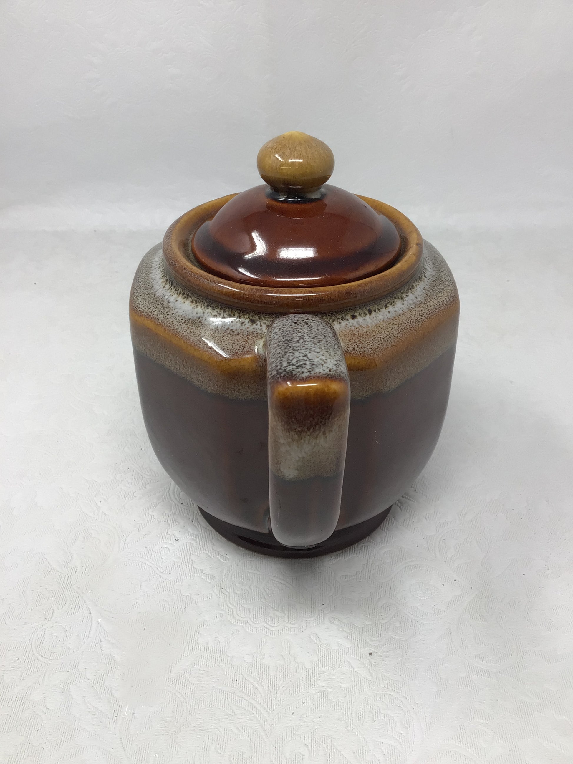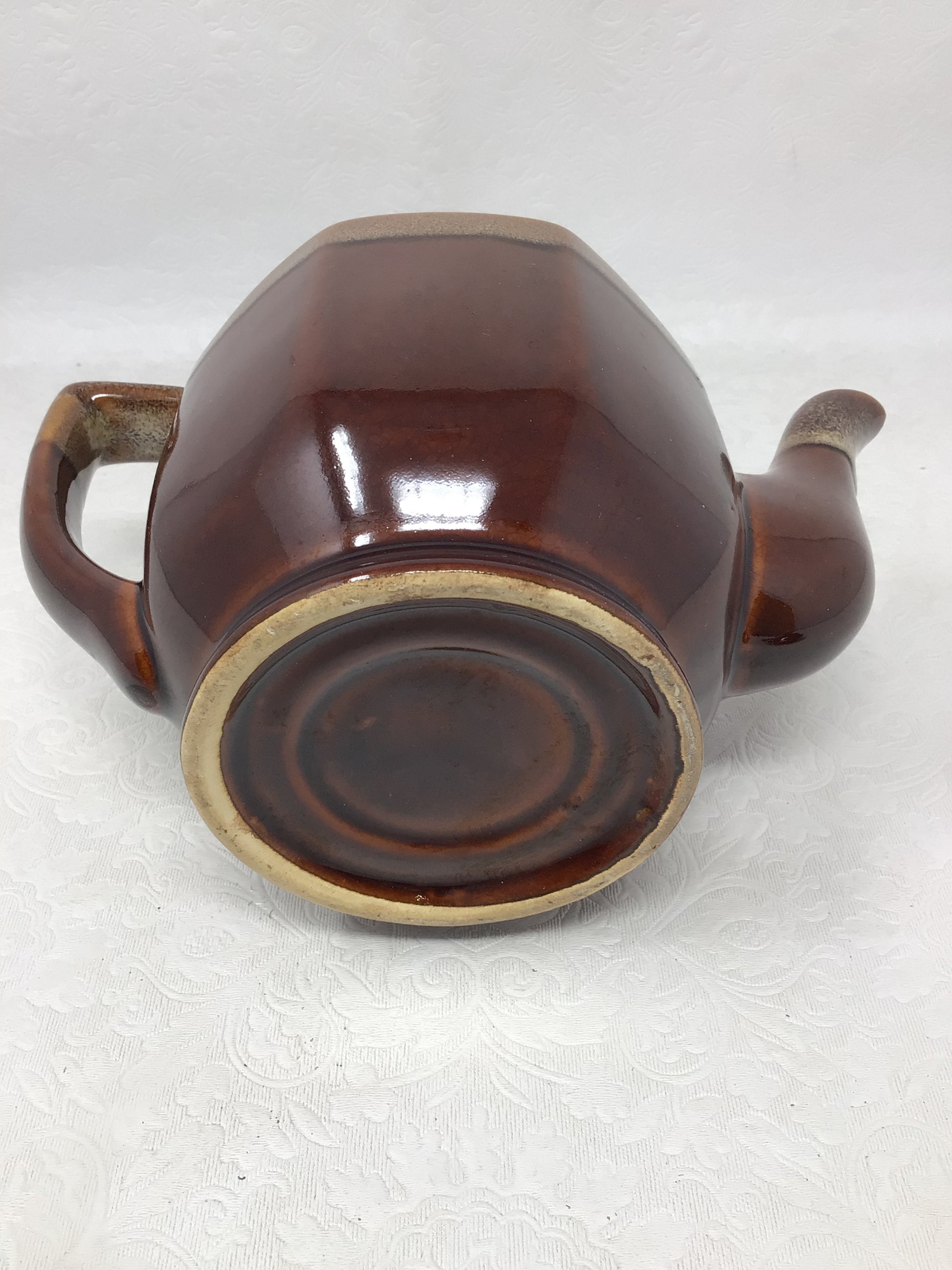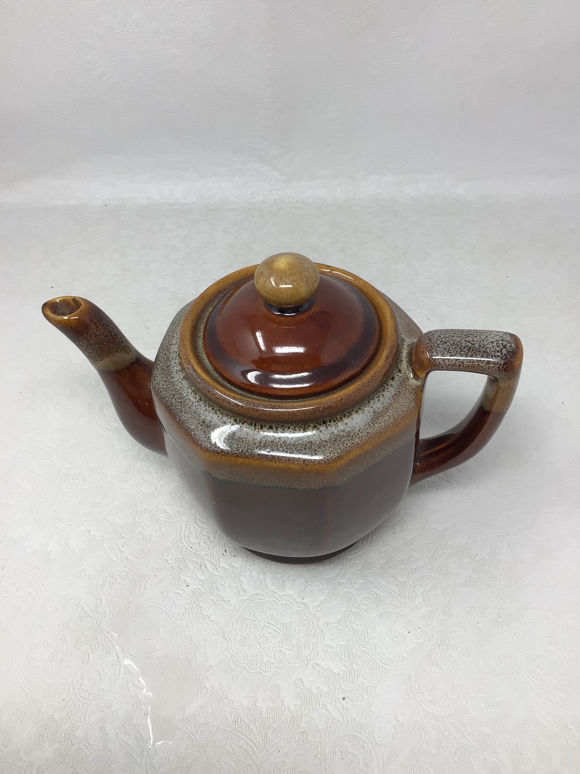 Cute brown teapot, often called a “Brown Betty” style teapot.