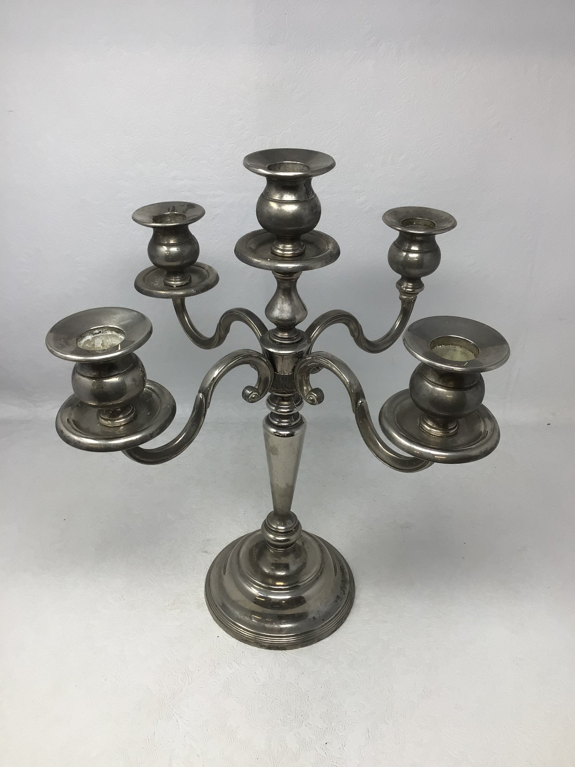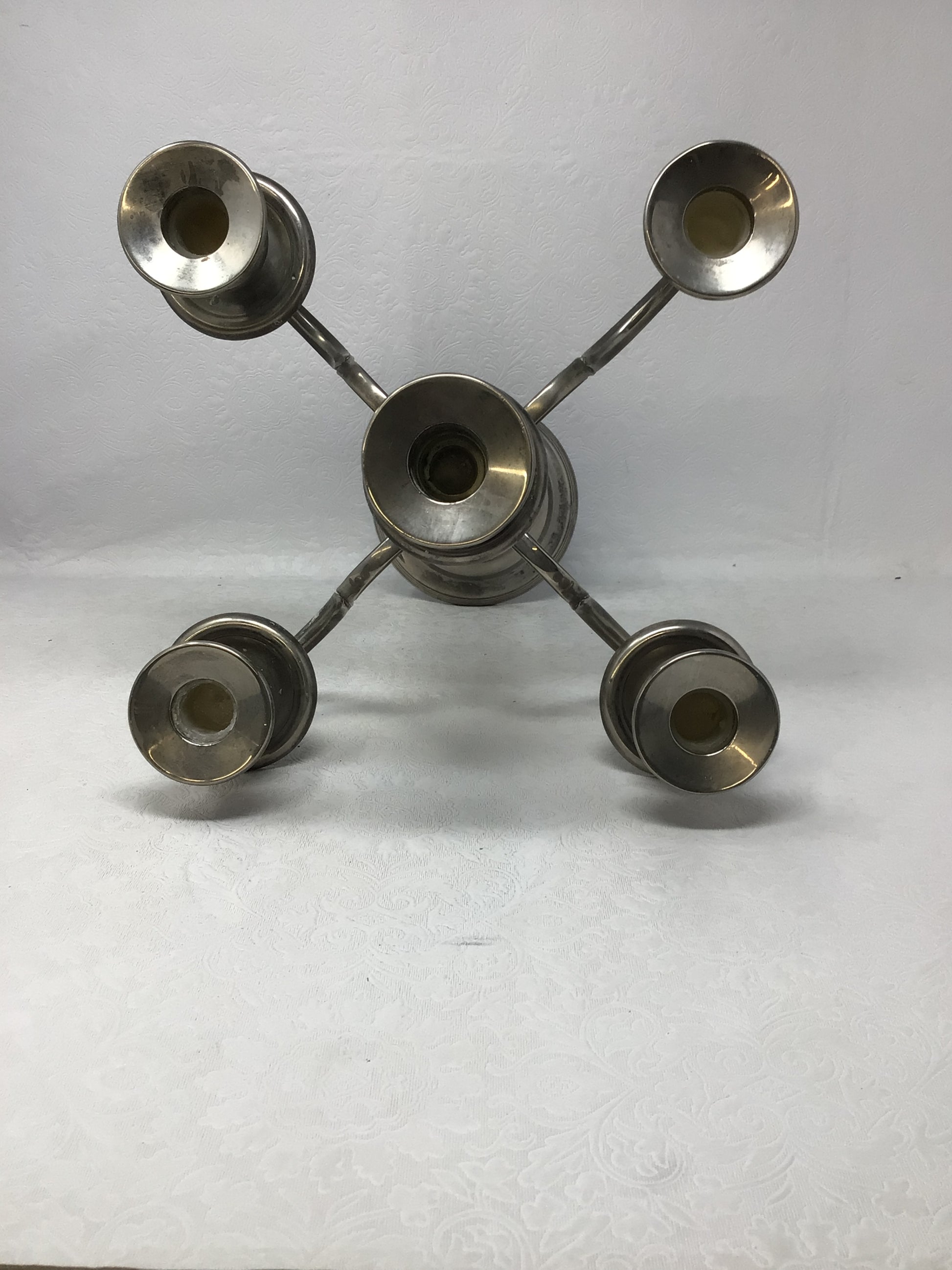 5 Light Silver Candelabra - Vintage silver plated multi-branched holder with central stem and four curved arms.