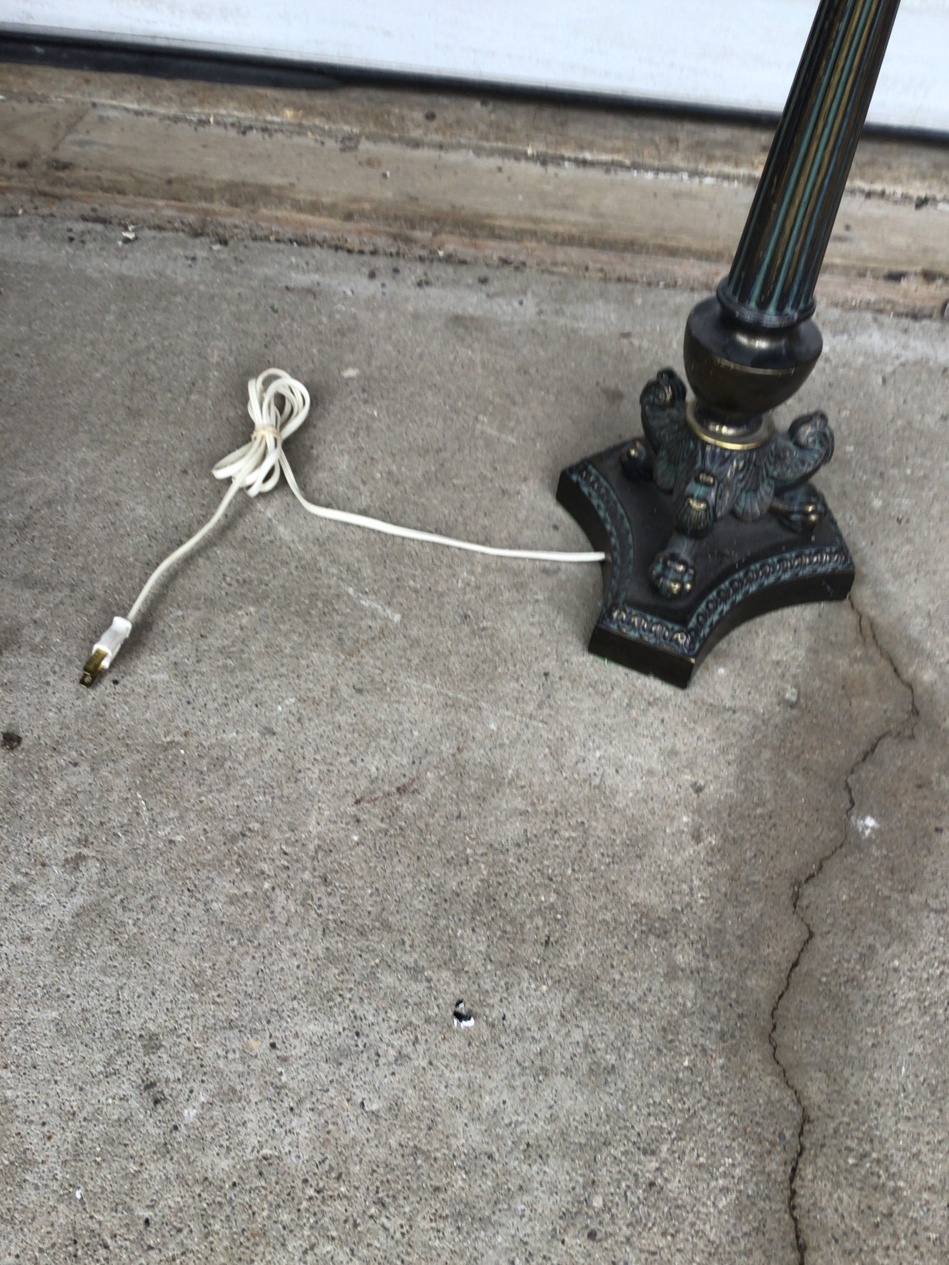 Candelabra Table Lamp with 3 Covers. This table lamp resembles a candelabra. There is a light bulb under the lamp shade and three covers that look like candles. In good condition.