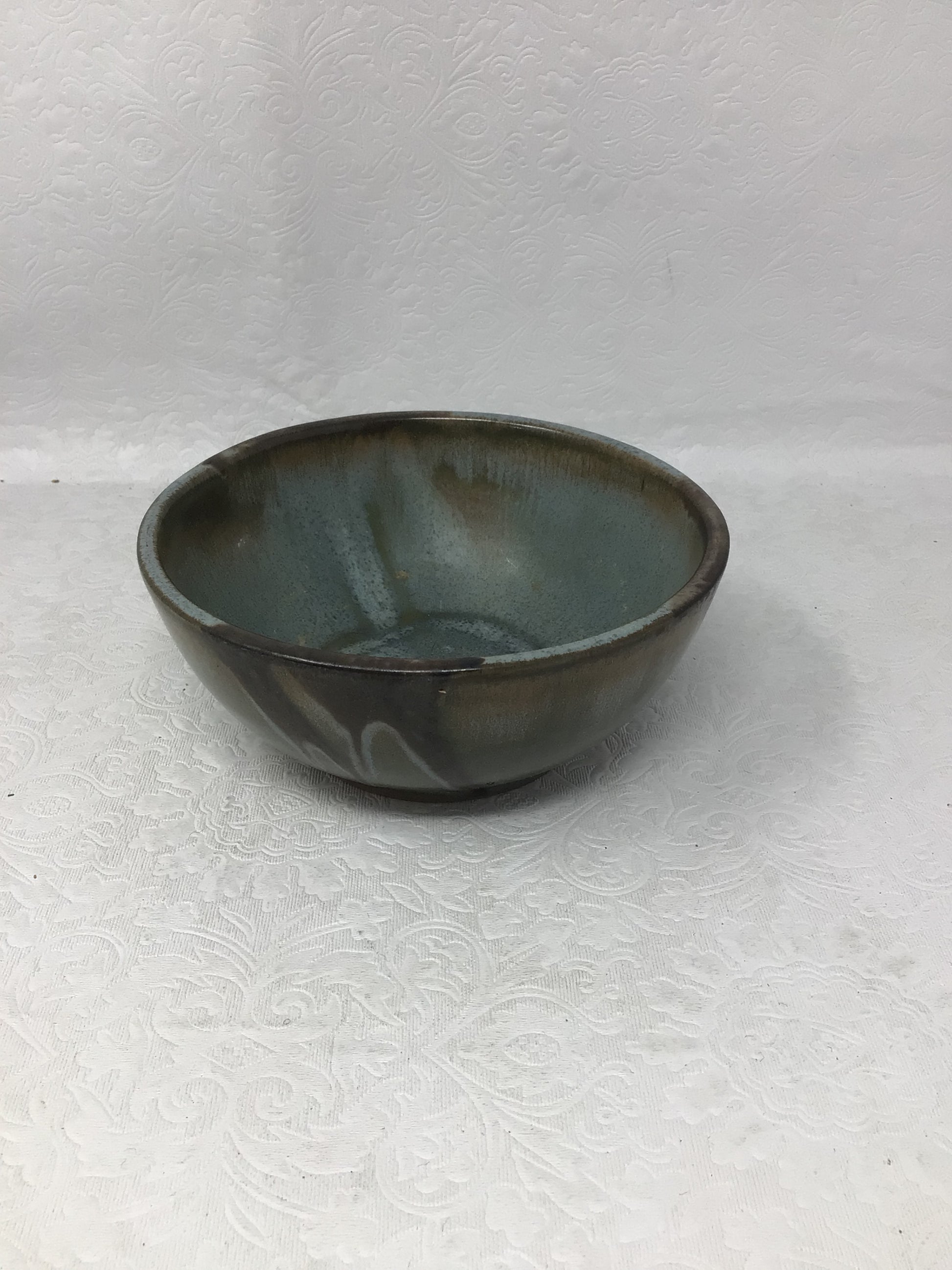 Blue Mountain Pottery Ceramic Stonewear Bowl. This bowl is a mix of greens and browns. It was made in Canada.