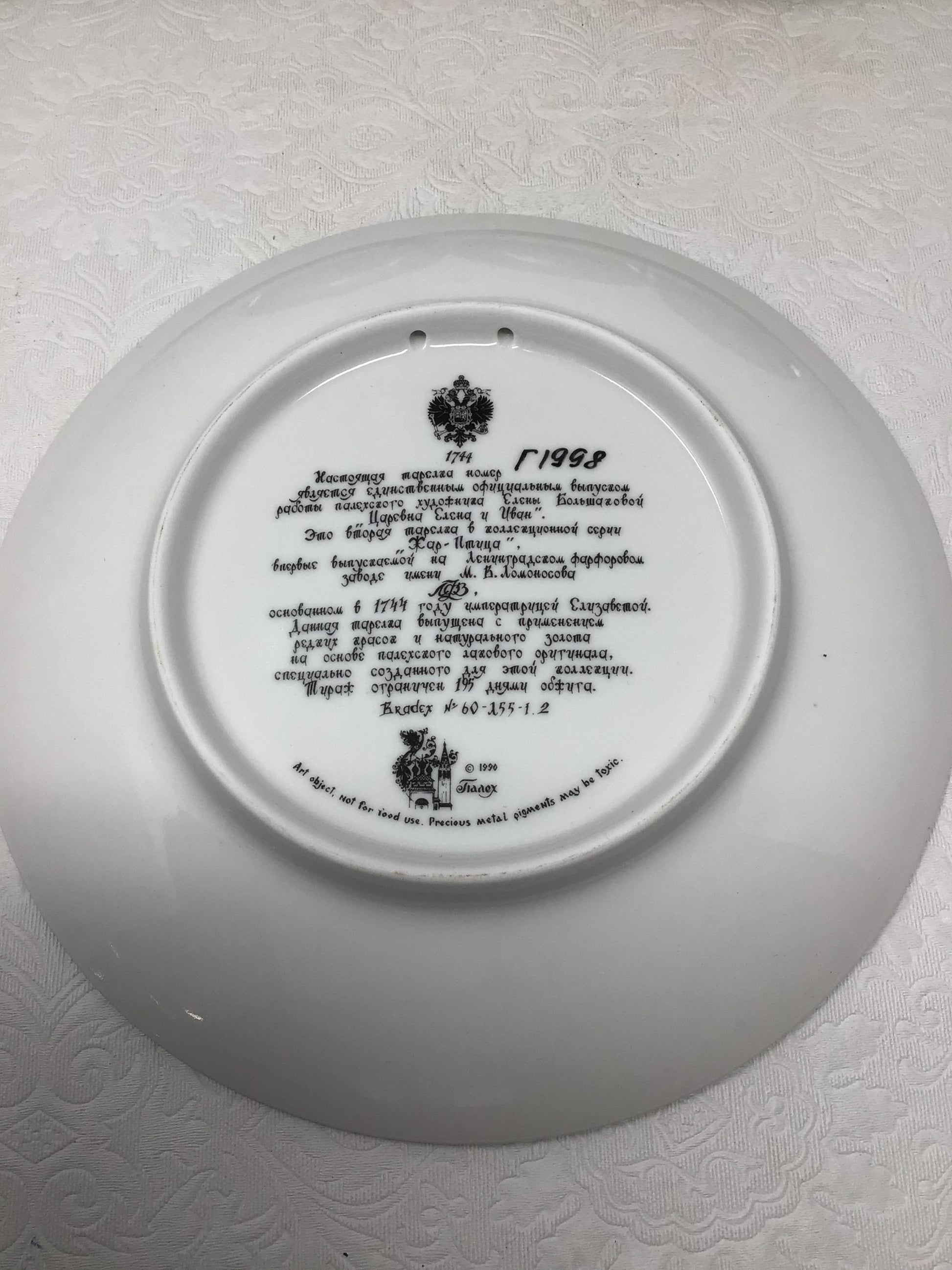 Russian Legends Collector Plates - Set of 7 Limited Edition Plates produced by the Bradford Exchange in agreement with Tianex, featuring miniature lacquer-style paintings from Russian fairy tales. The set includes the plate "Tsar Saltan" (sixth issue) and "The Firebird". The plates are made of hard-fired porcelain with 18 kt gold accents. The series was produced in the late 1980's.