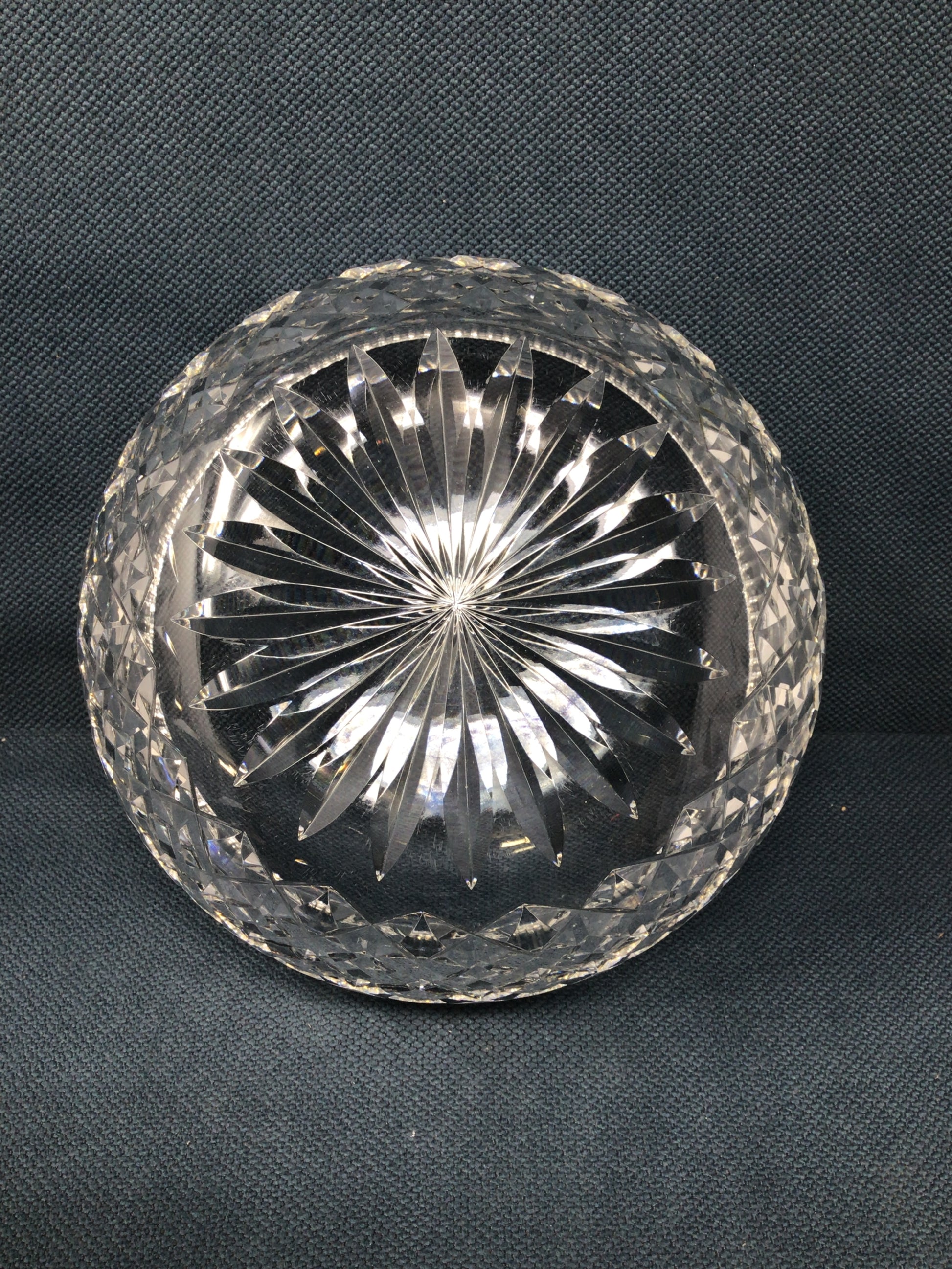 Crystal Bowl with Diamond-cut Pattern. This beautiful bowl has a cut crystal pattern. It could be used as a fruit bowl or to hold decor. In good condition.
