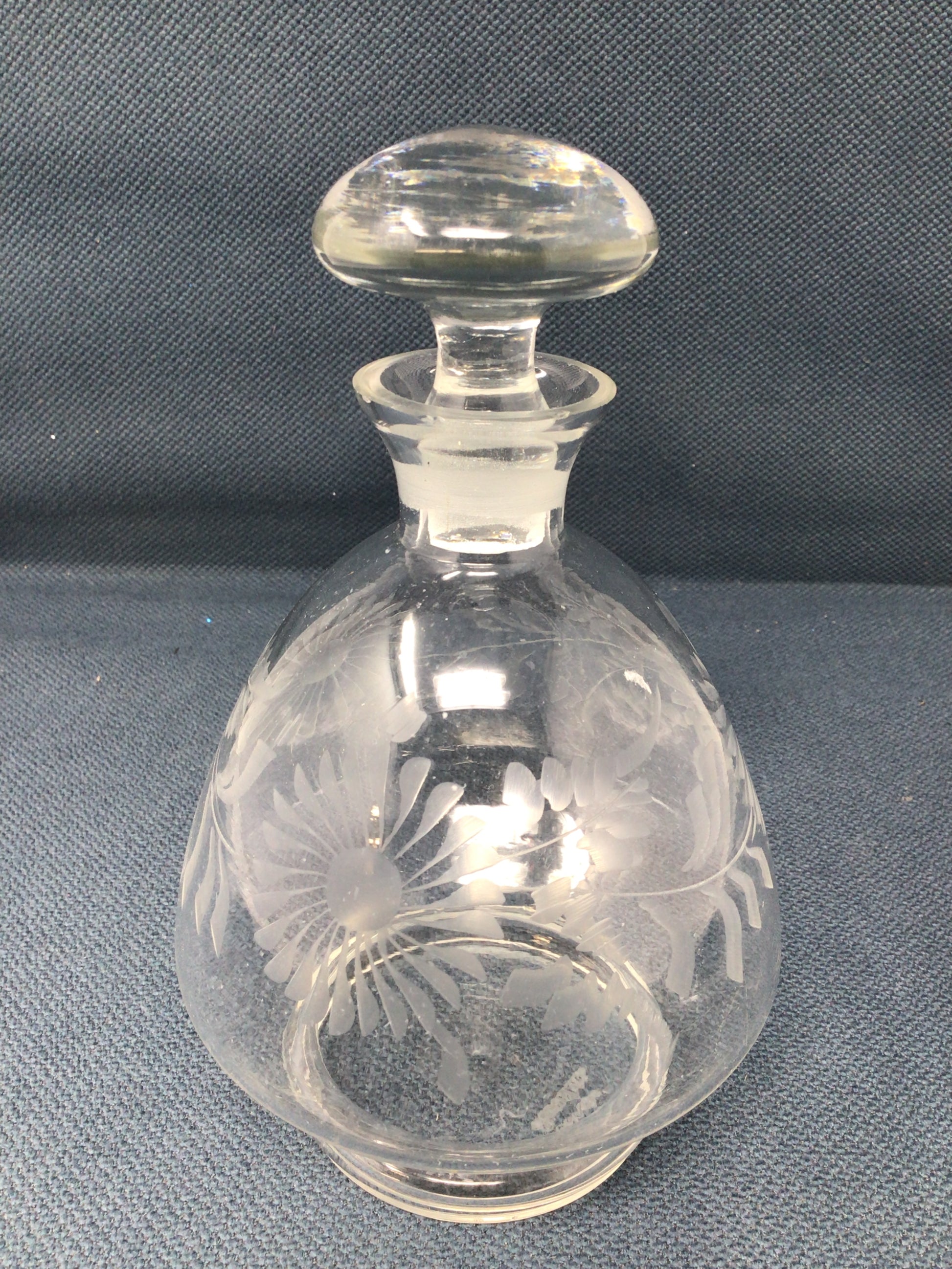 Czechoslovakia Floral Glass Decanter - Lovely etched glass floral patterned decanter.