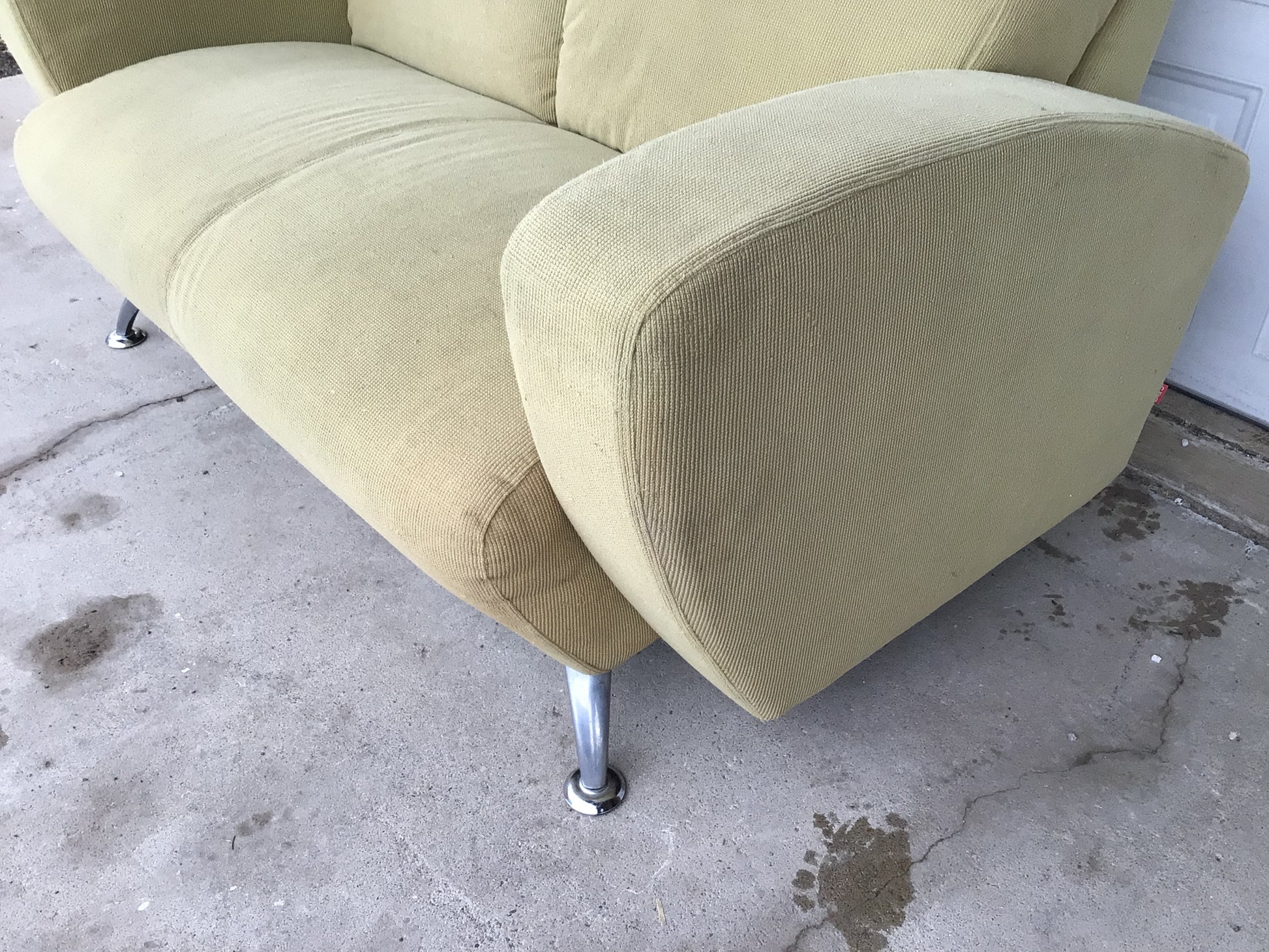 Cute light mustard-coloured loveseat from EQ3 with metal feet.