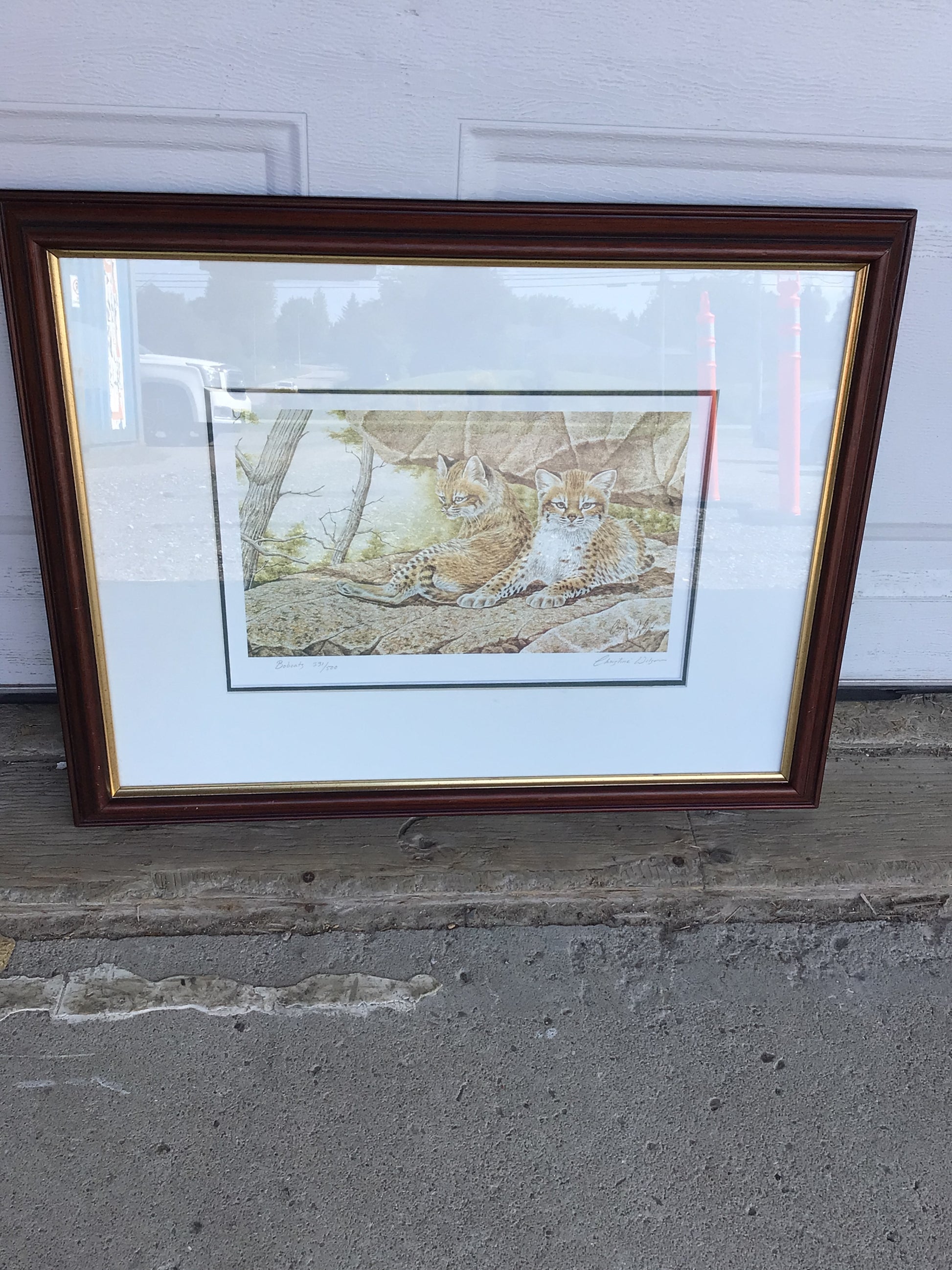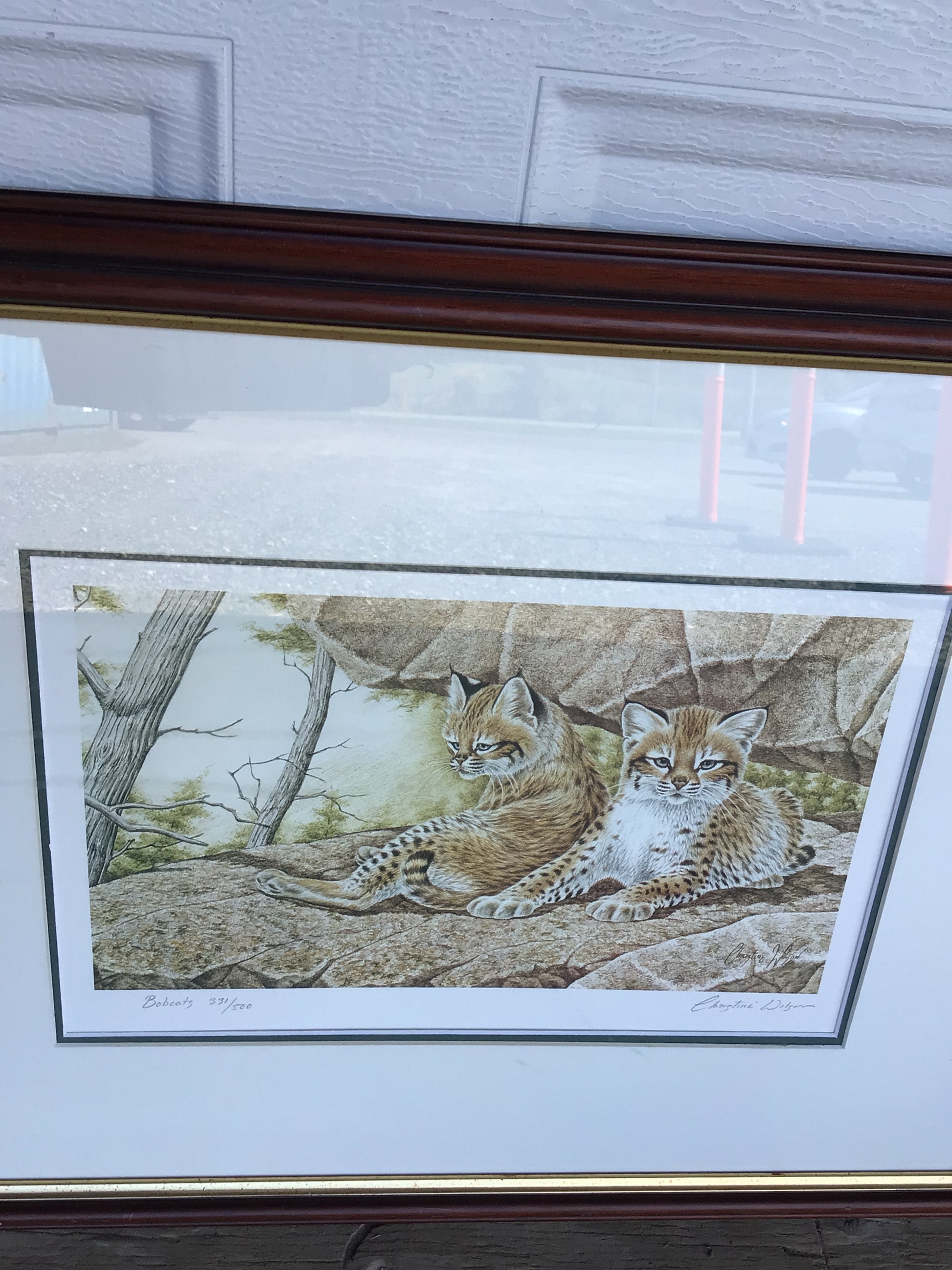 “First Snowfall” by Lisa Calvert. Limited edition print signed and numbered by the artist, depicting a cougar in a snowy wooded setting.