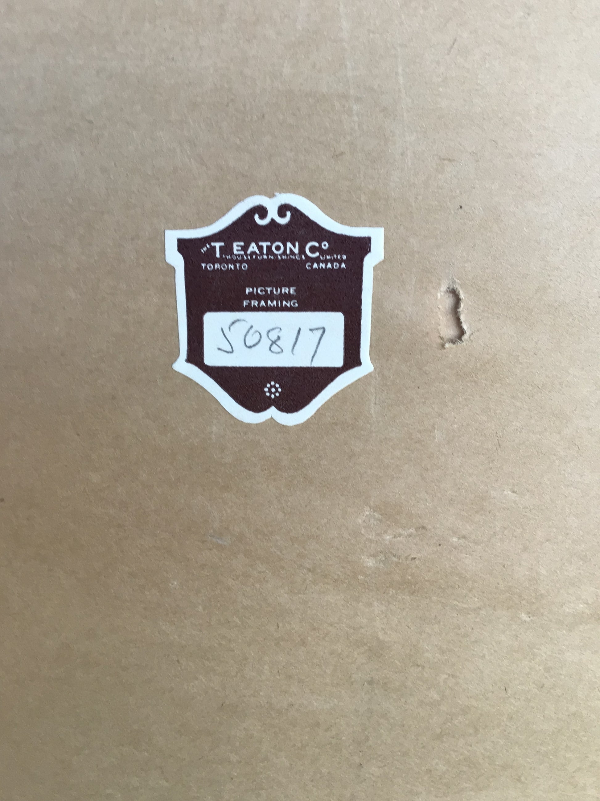 Framed Needlepoint Tapestry. Depicting a gallant or courting scene in a garden scene, likely from the Victorian era. Gorgeous gold antiqued frame and beige matte with pink inset matte which was framed by the T. Eaton Co.