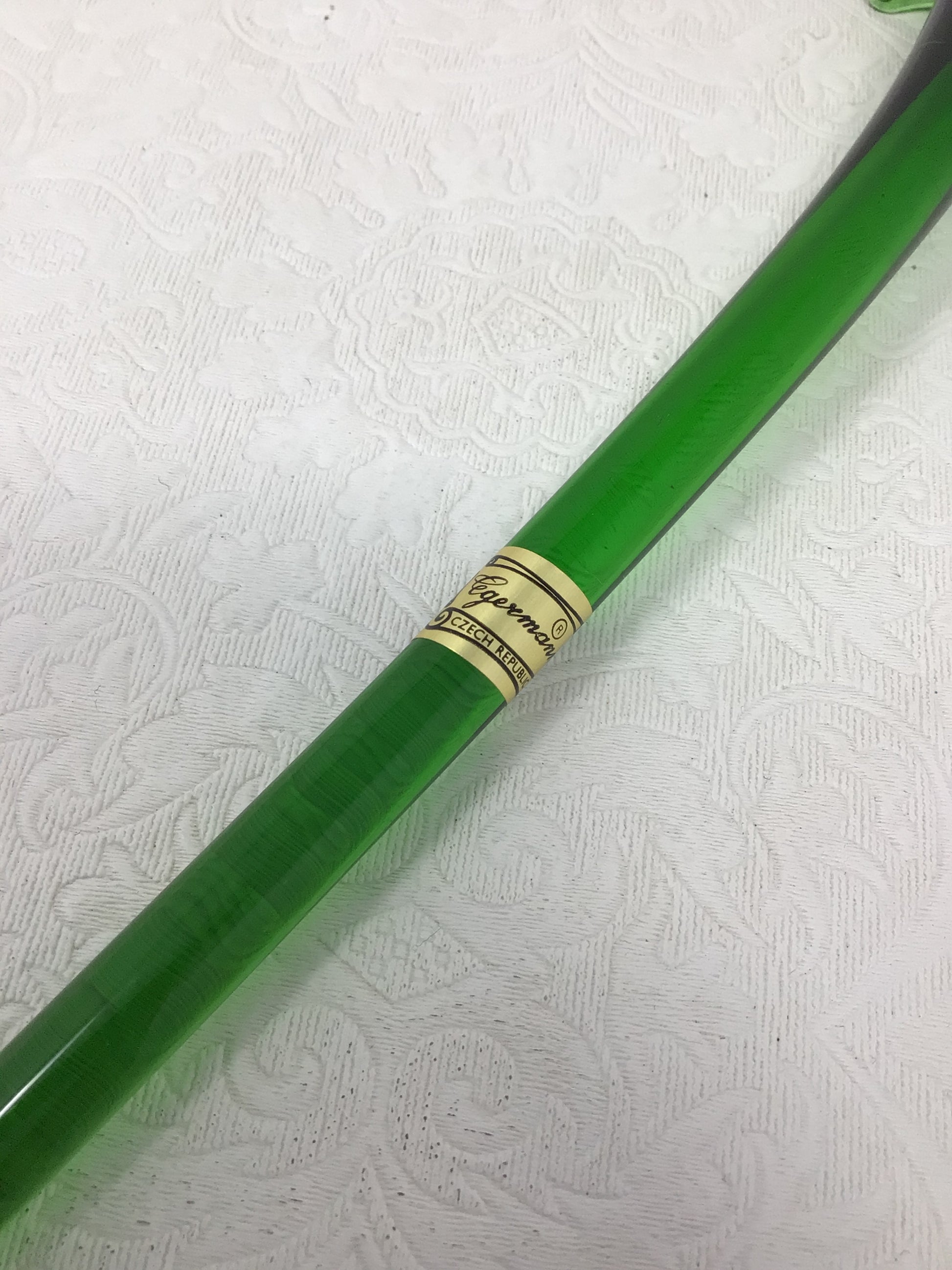 Hand Blown Glass Flower. This hand blown glass flower has a green stem with a purple flower. It was made in Czech Republic. This is a great decor piece to have, it can be displayed on a table or in a vase.