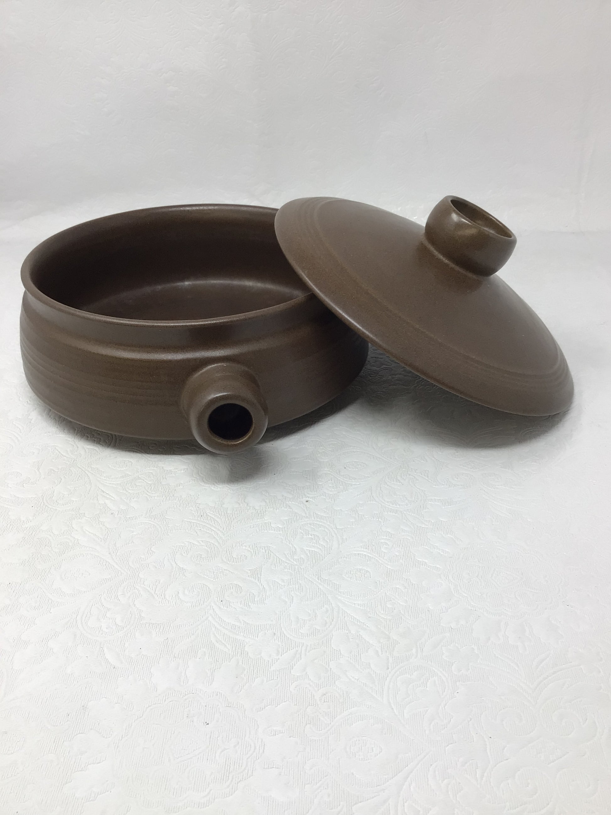 Vintage Langley "Mayflower" Ovenware - Langley ovenware was made in England, primarily produced by Langley Potterty Ltd., which was later merged with Denby Pottery. The Mayflower pattern is a vintage collectable and is characterized by a deep chocolate brown color and a matte finish with subtle, raised ridges. The Mayflower pattern was produced between 1965 and 1982, when the Langley Mill was closed.