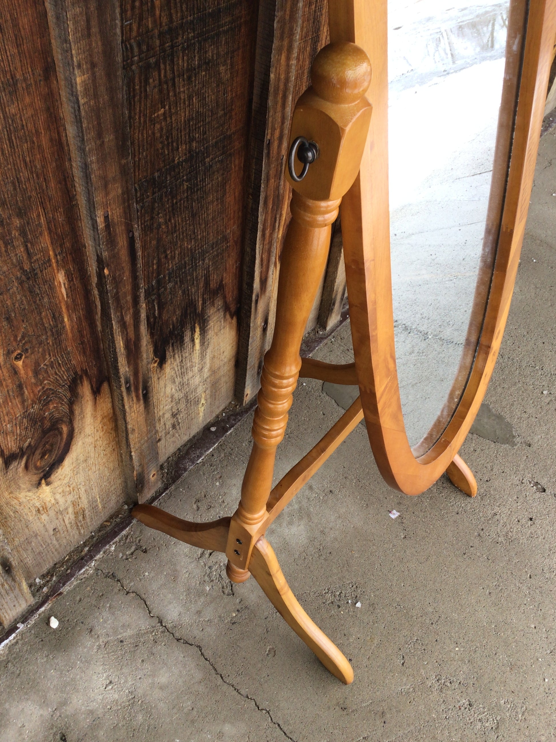 Vintage Like Oval Swivel Mirror. This oval mirror can rotate on its stand, it has a wooden frame. It would look great in your bedroom! In good condition.