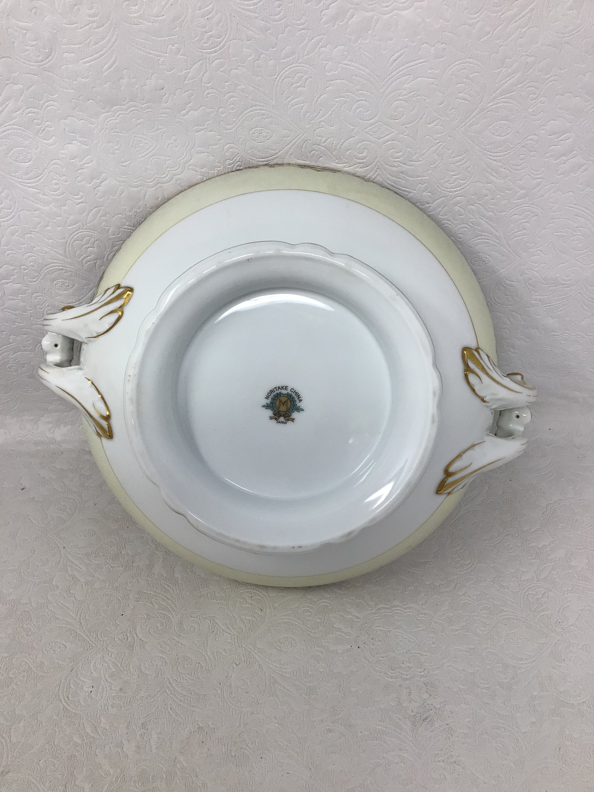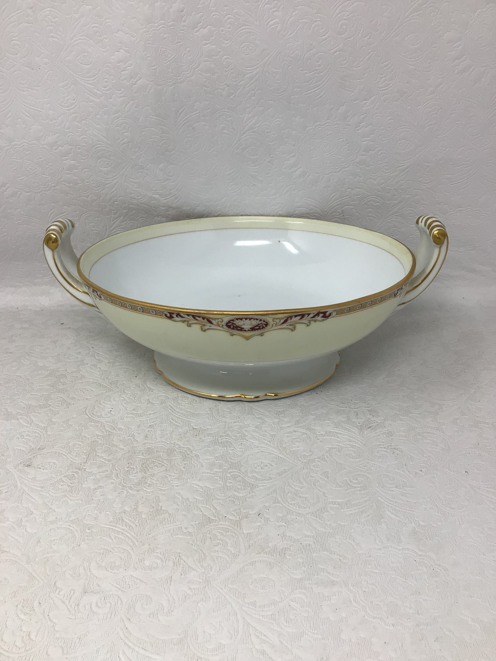 Vintage Noritake Handled Bowl. This beautiful porcelain bowl has handles and gold details. It could be used as a fruit bowl or to serve food. In good condition.