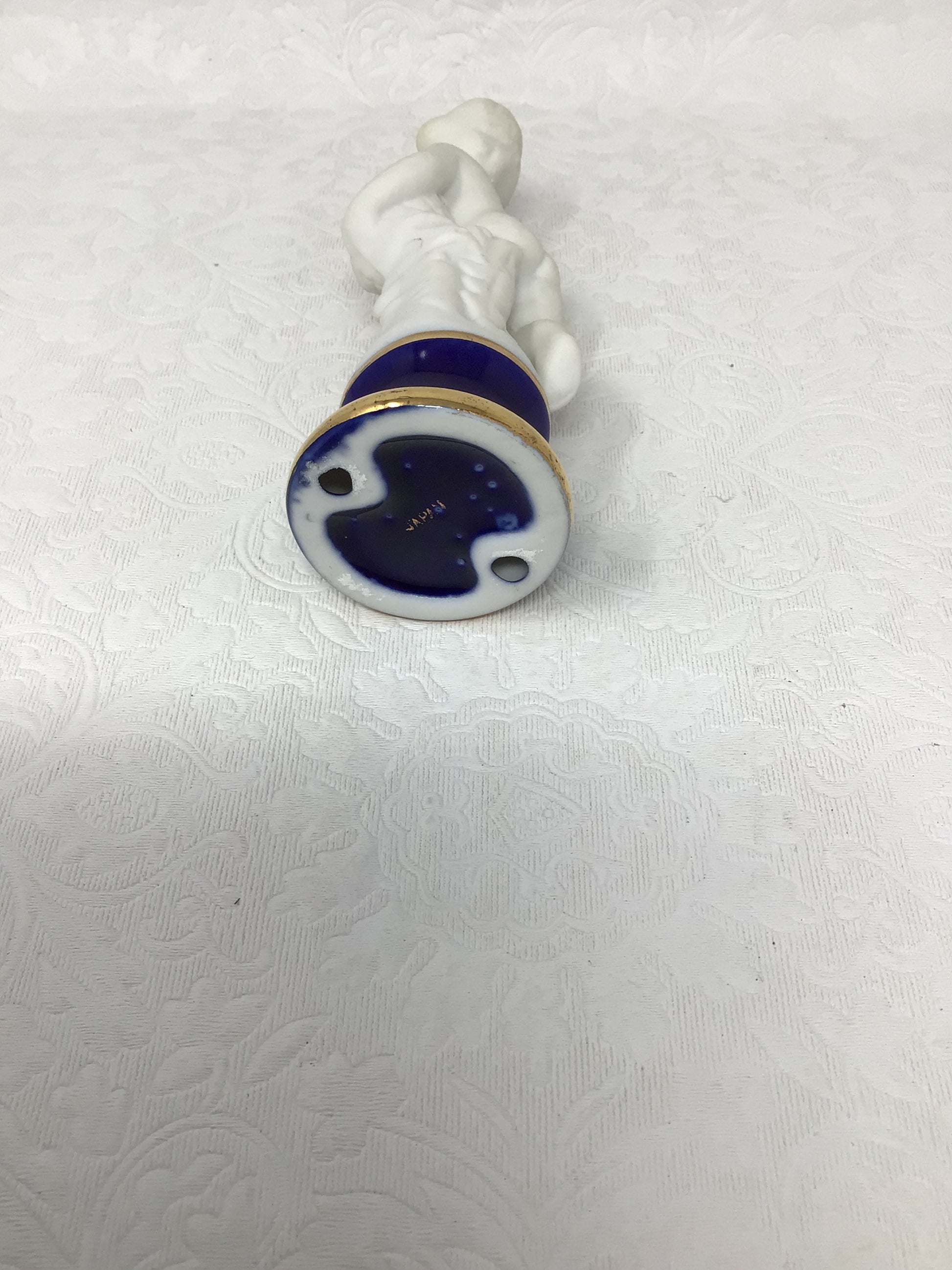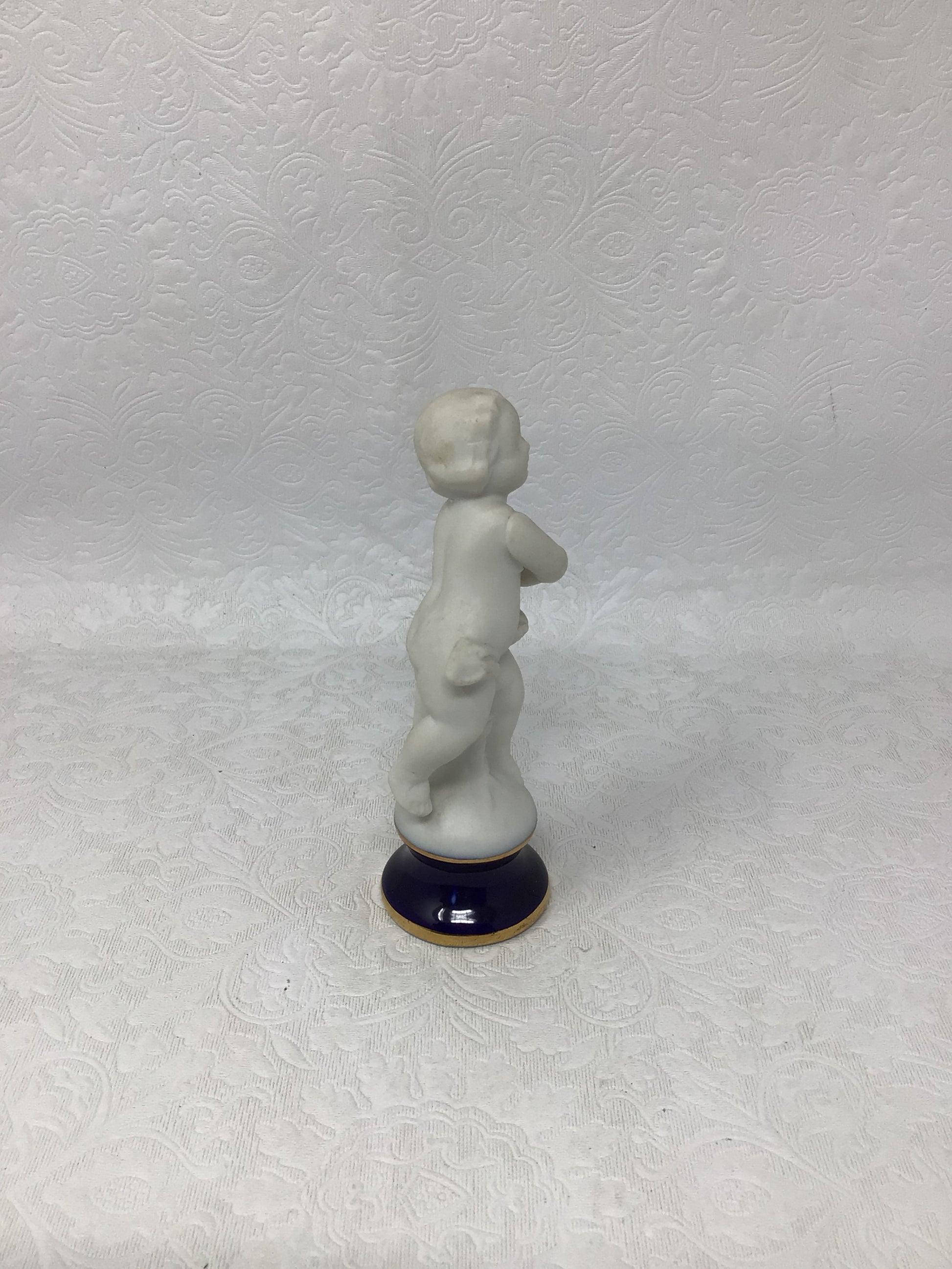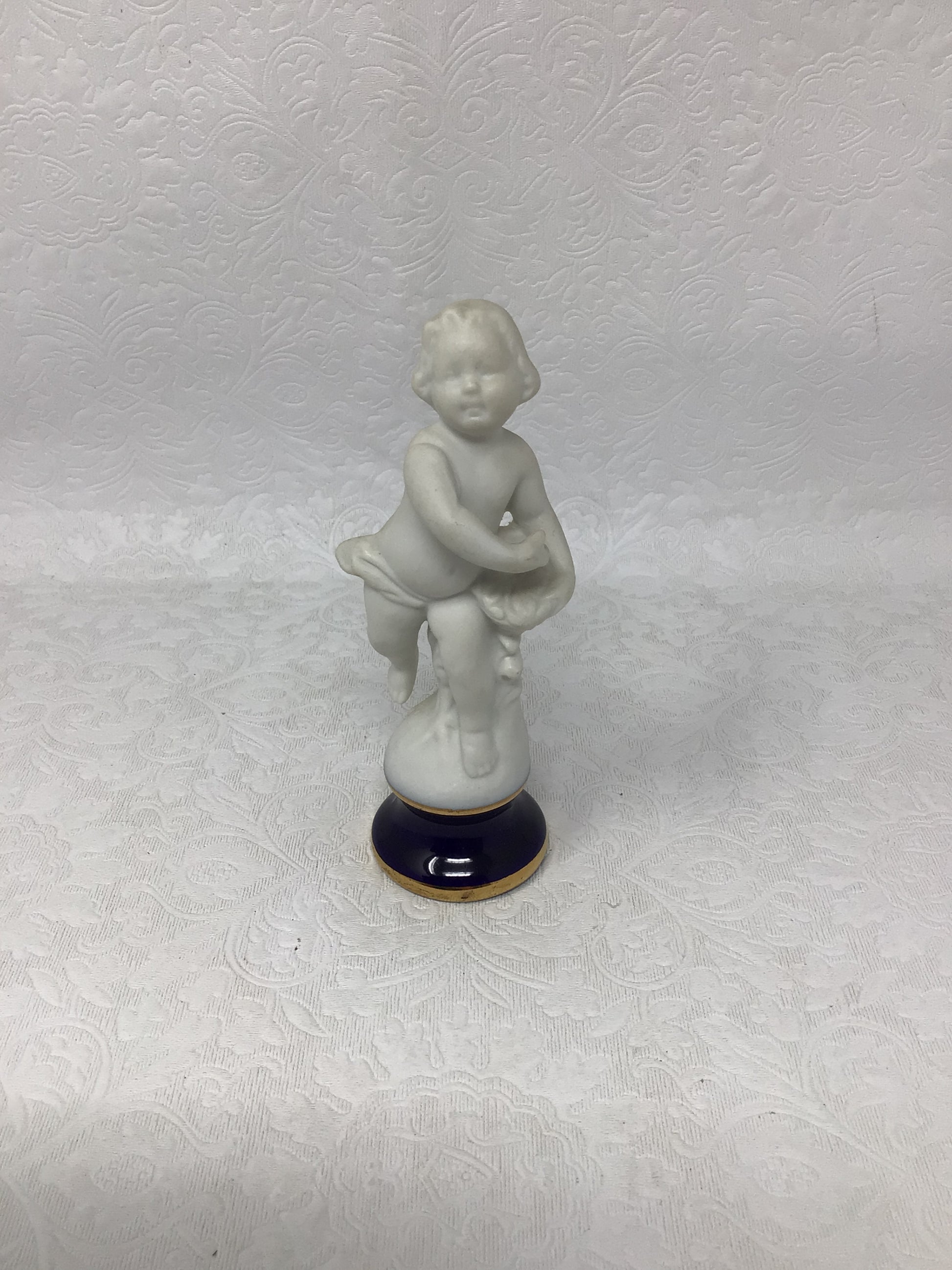 Porcelain Child Figurine with blue base and gold. Made in Japan.