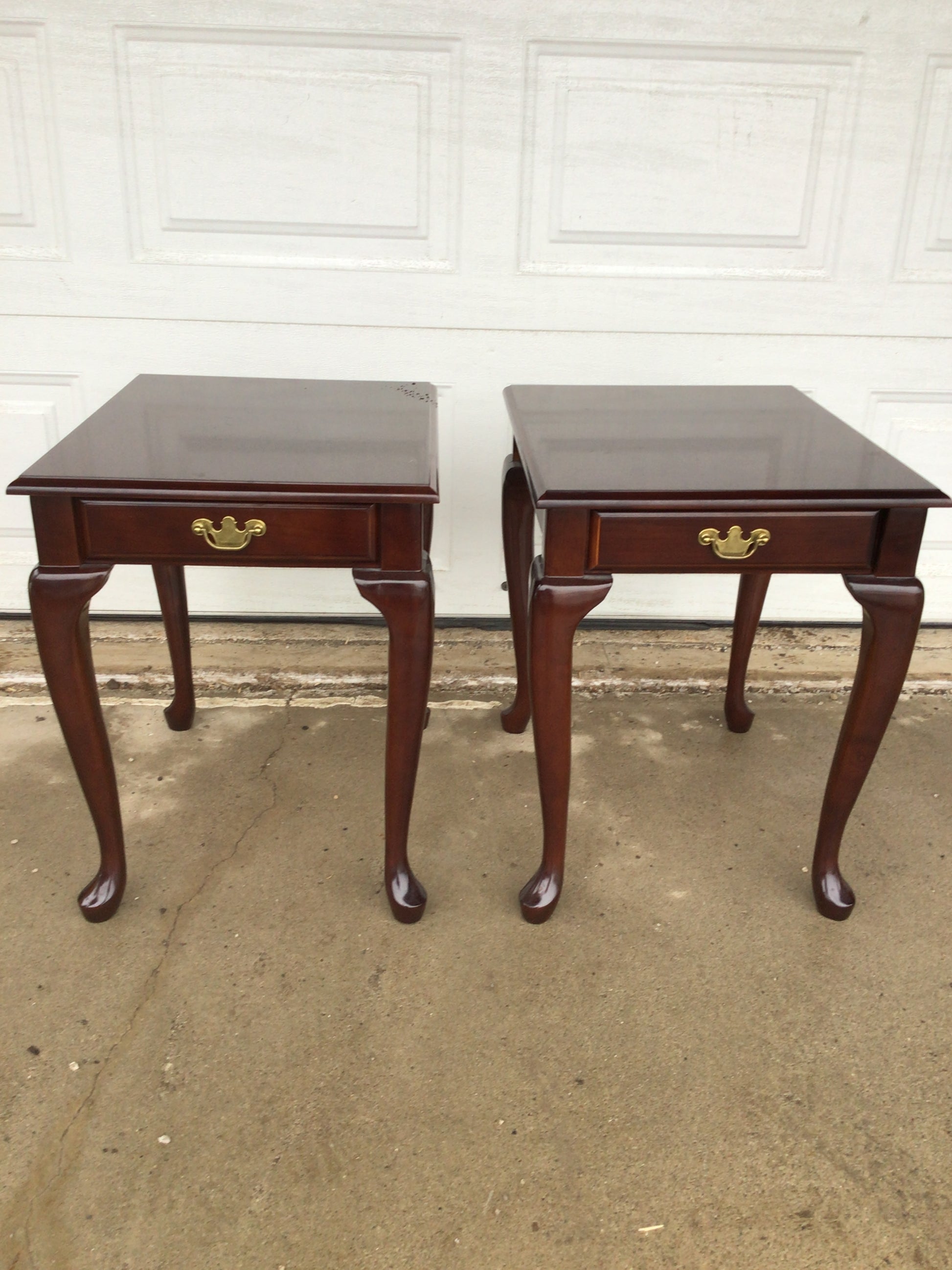 A beautiful Vintage Queen Anne Style Nightstand. This table is in excellent condition.It has beautiful details and is a stunning red wood.