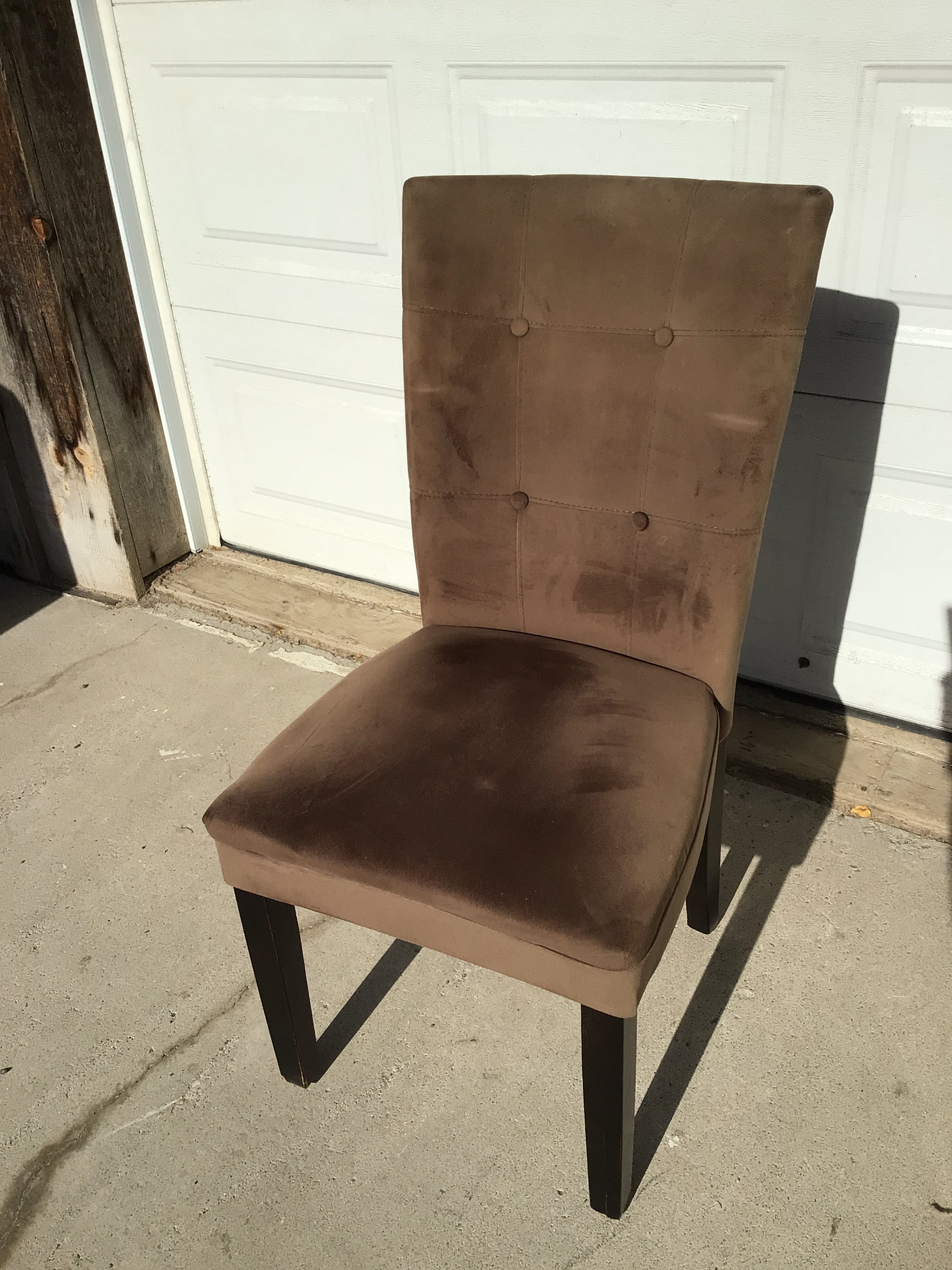 Brown Suede Feel Chair - Modern chair with soft texture, in great condition. Four available, each sold separately.