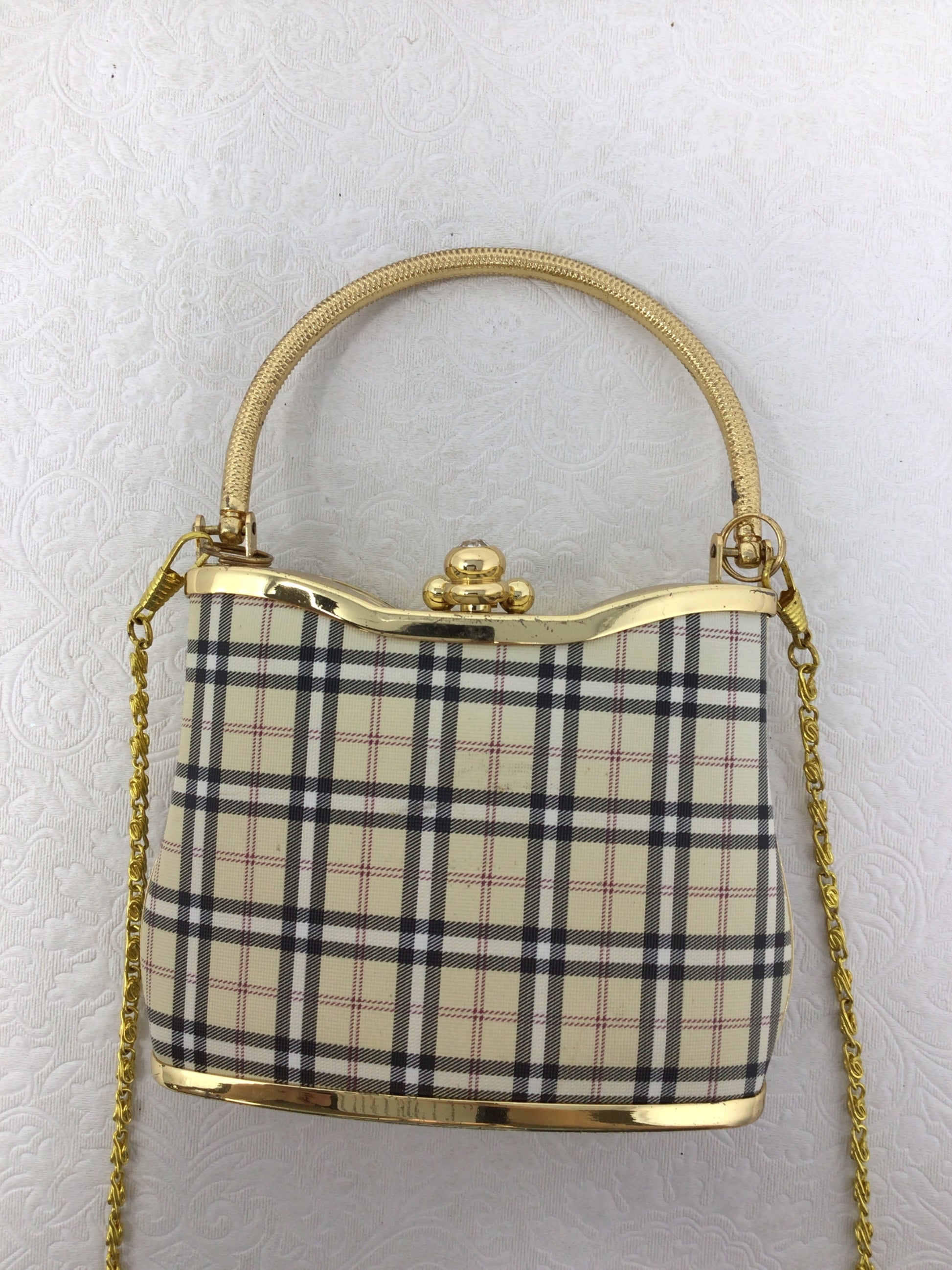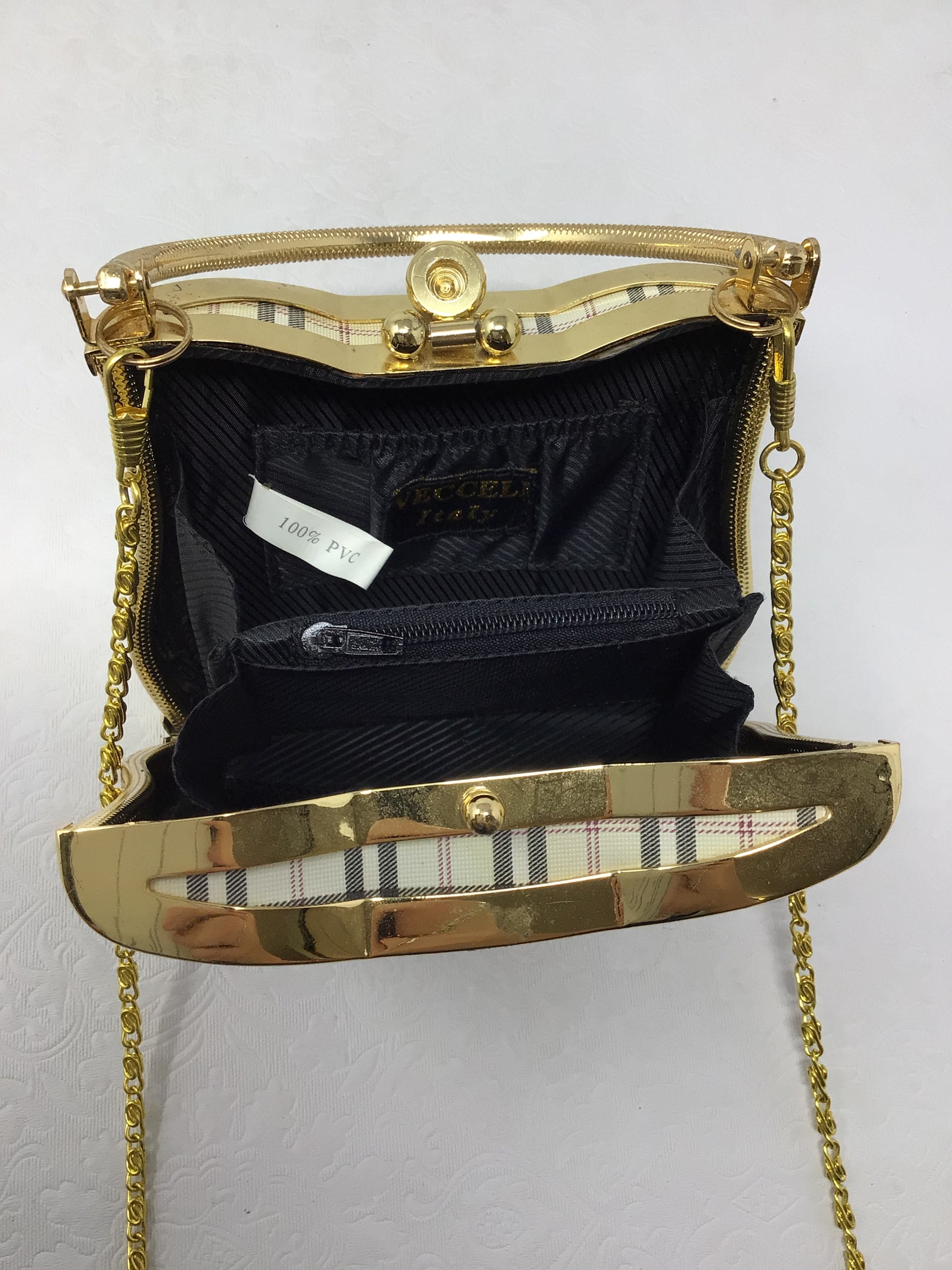 “Vecceli” Gold and Plaid Purse