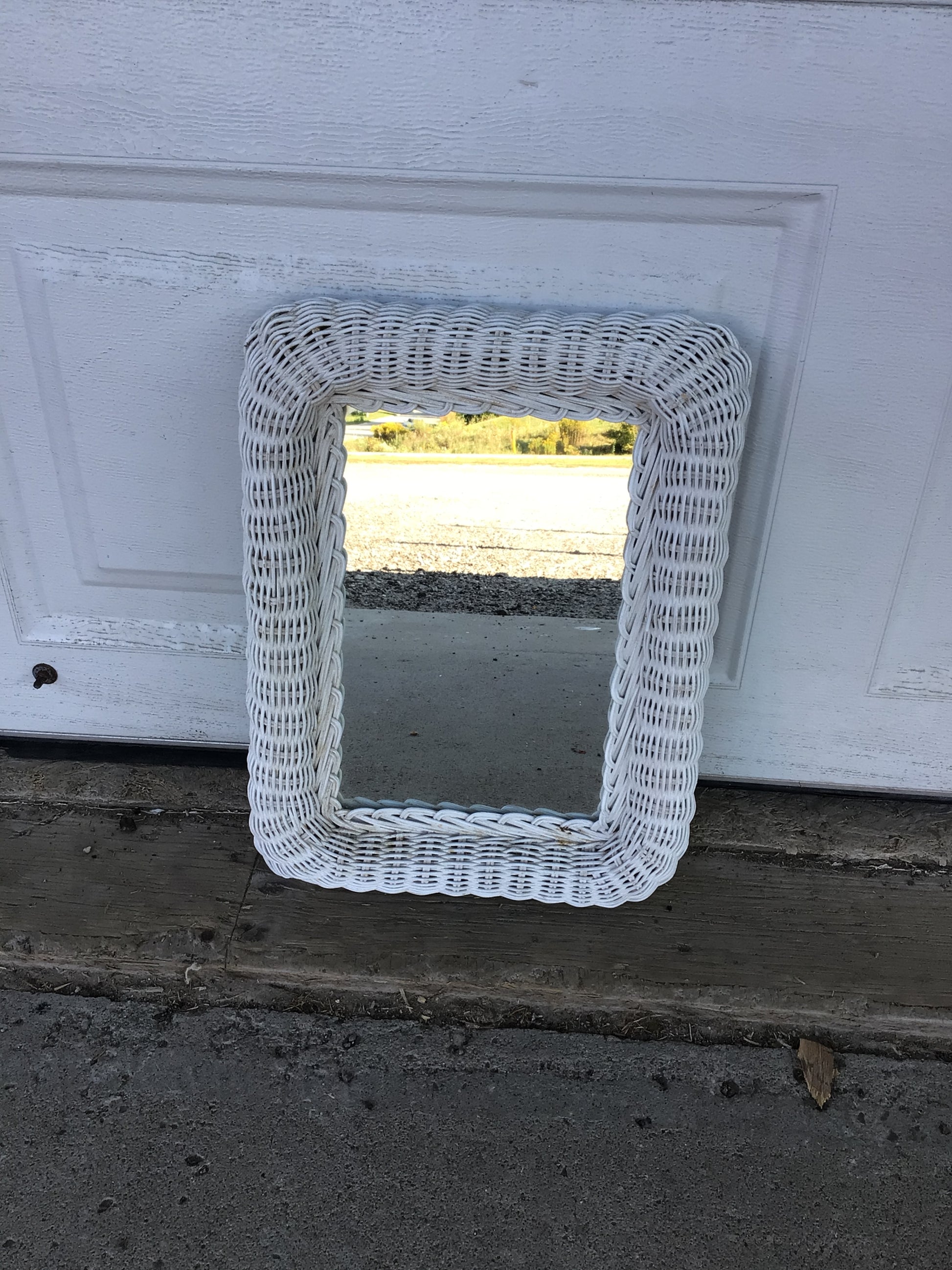 Vintage Like White Wicker Wall Mirror