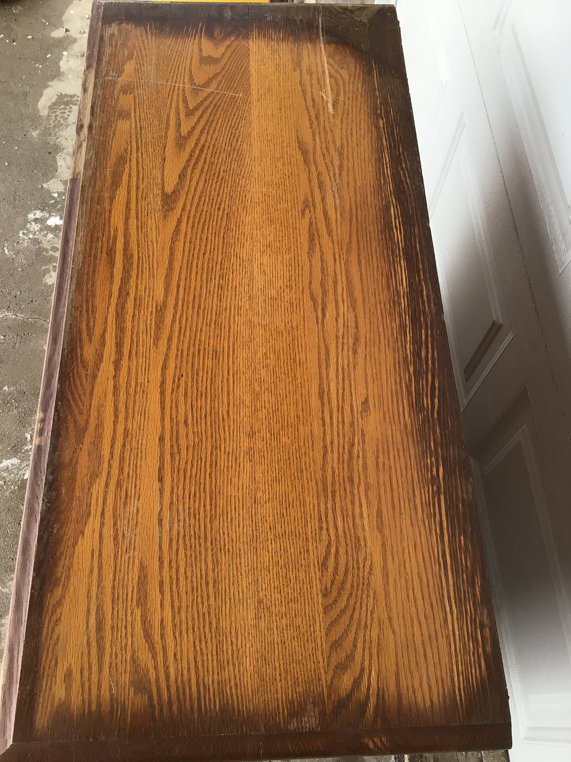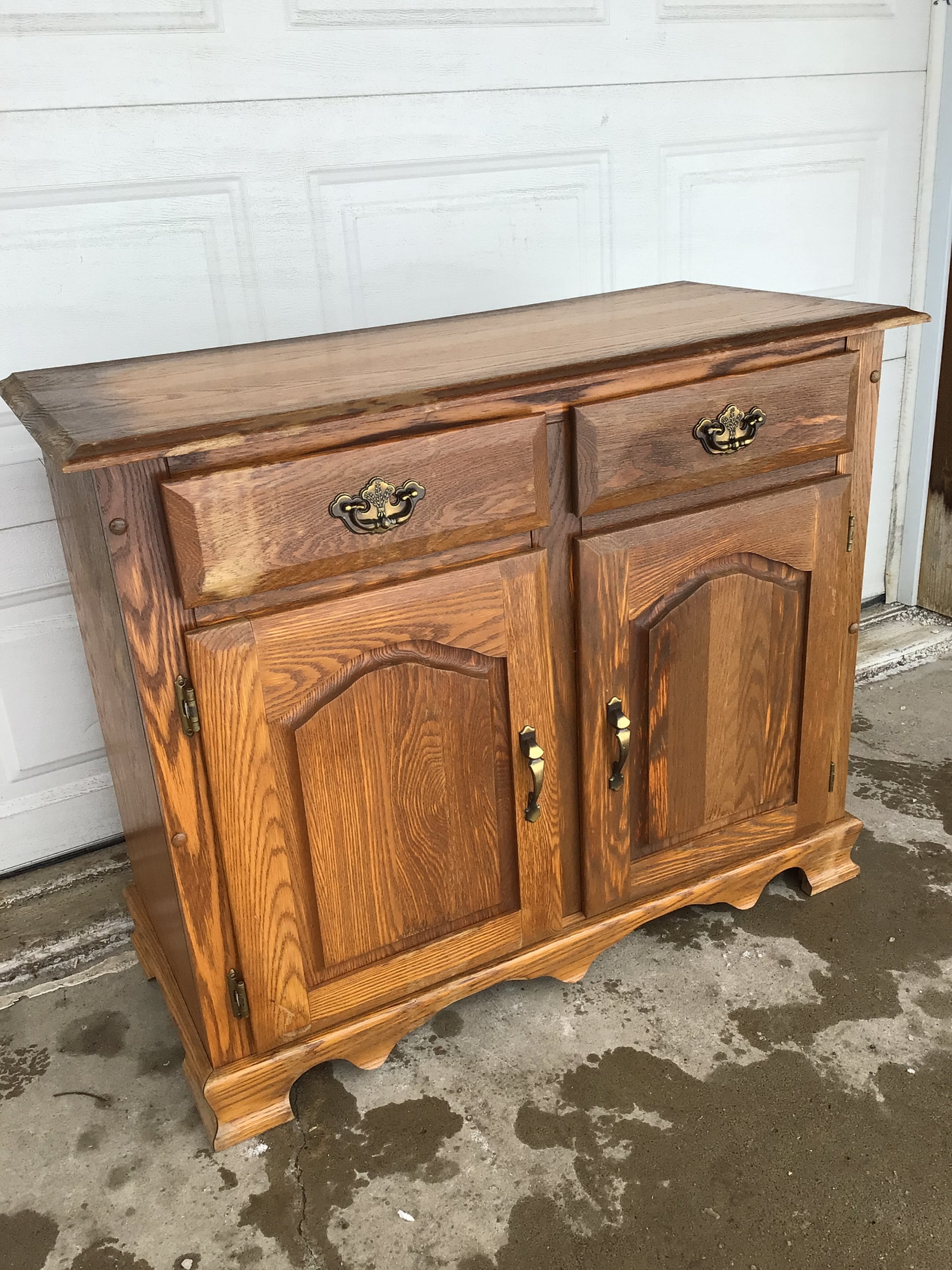 Vintage Storage Cabinet - Made of solid oak with antiqued brass hardware, this cabinet features 2 drawers and a lower cabinet with two doors.