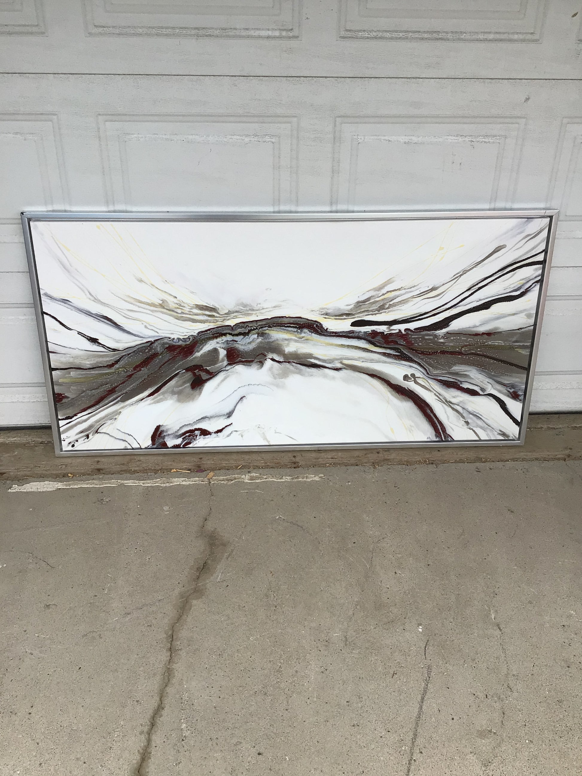 White Designed Canvas Landscape Painting. This is a beautiful painting is perfect for a living space looking for an artistic scenery. Good condition.